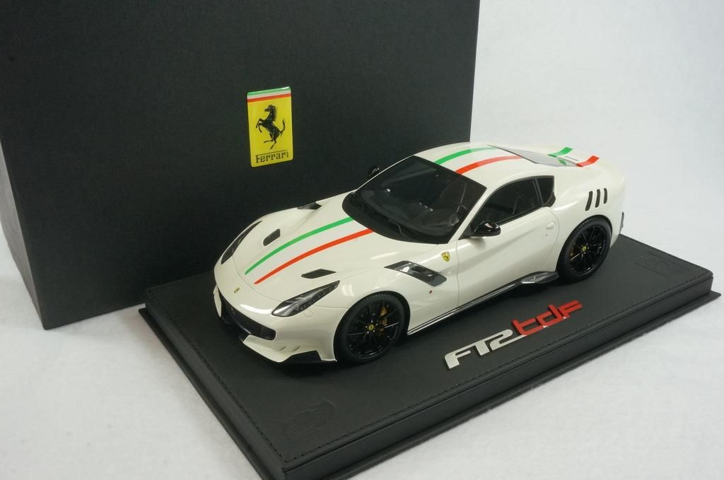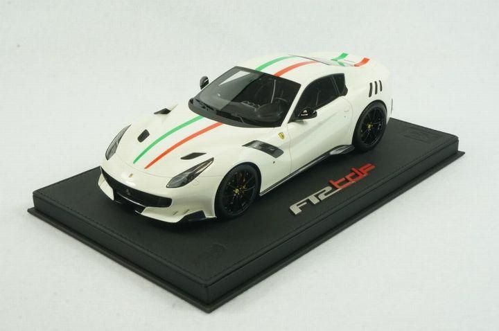 1/18 BBR Ferrari F12 TDF avus white with italian stripe set on black deluxe leather base