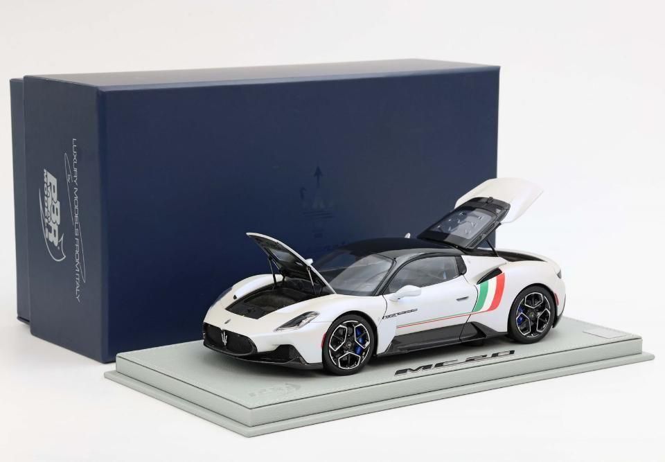 1/18 BBR Maserati MC20 diecast full open white Audace - Italian Flag