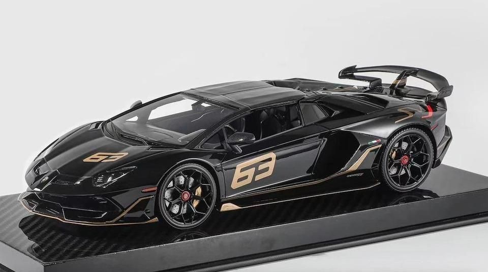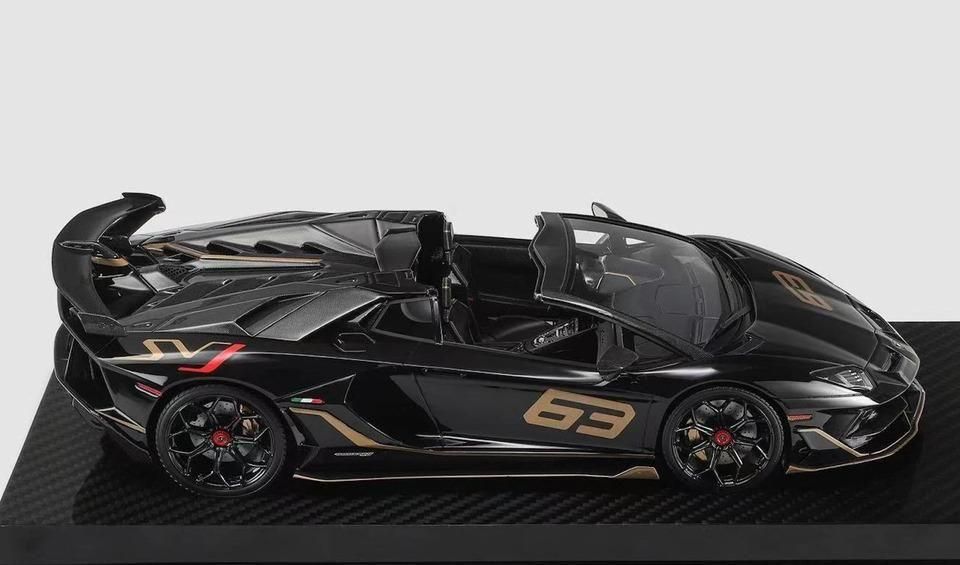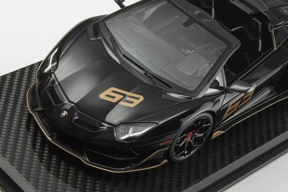 1/18 Runner Lamborghini Aventador SVJ IN Gloss Black Carbon Fiber Base